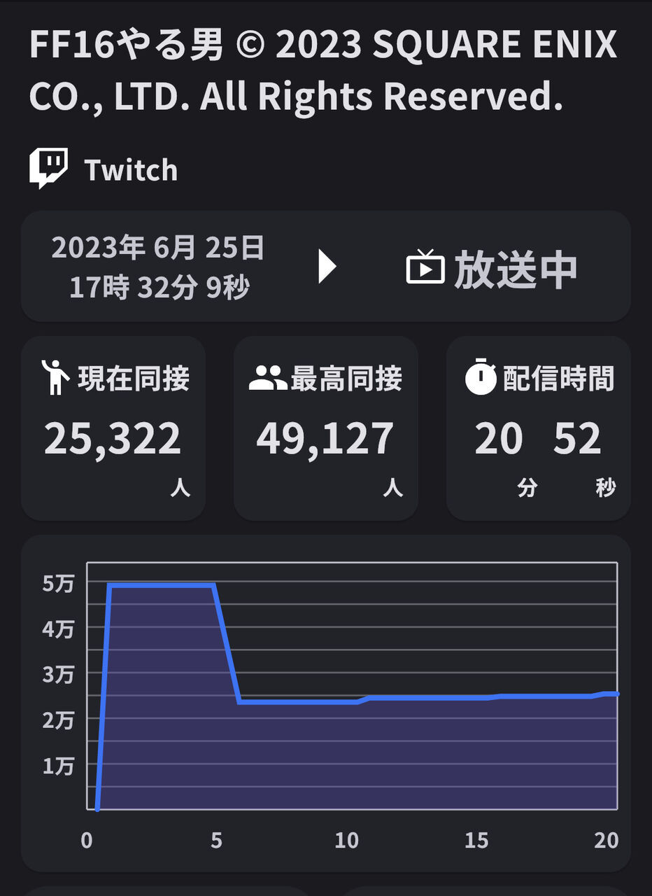 同接数が数分だけ「移行前と移行後の同接の合算」になる